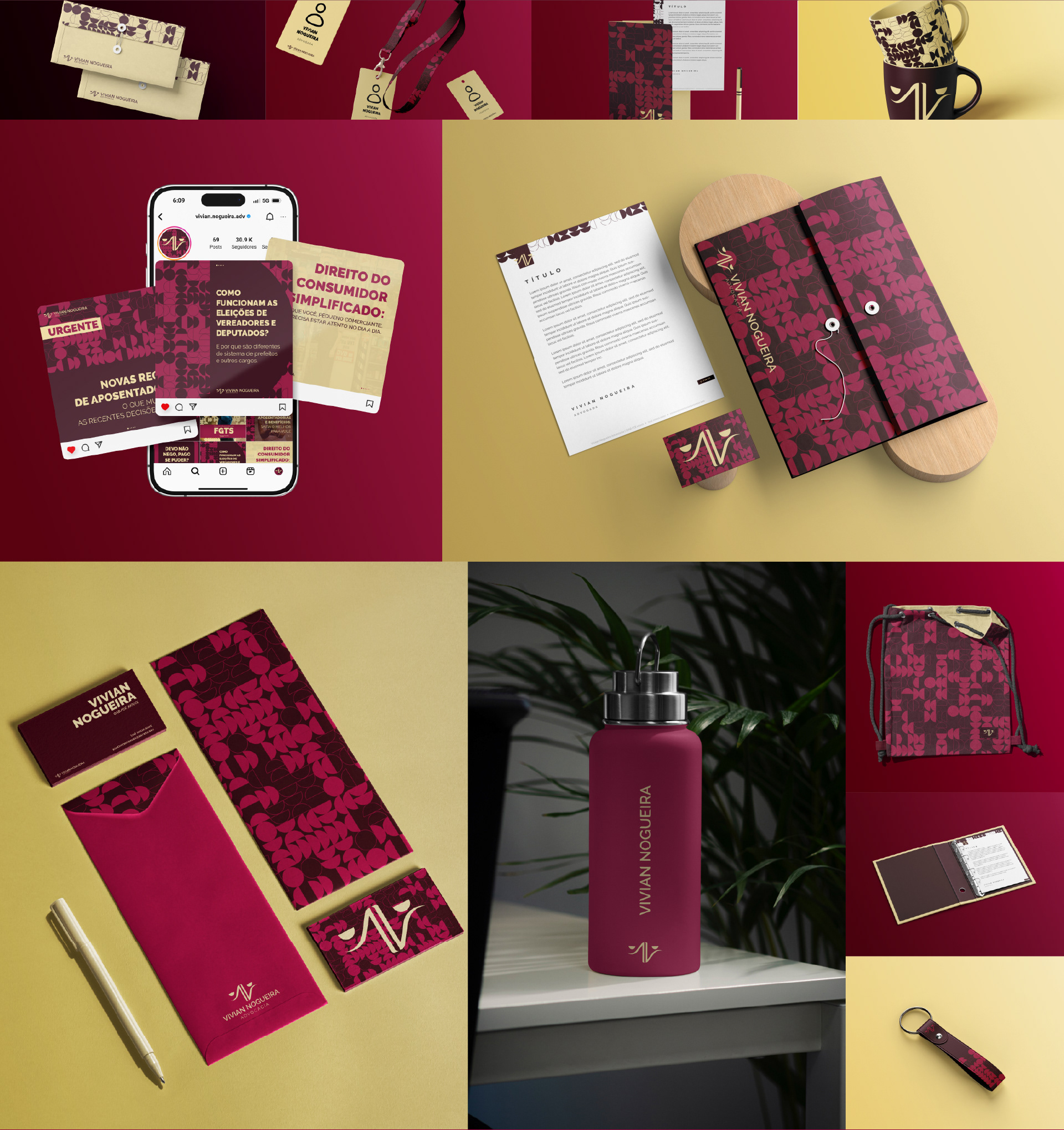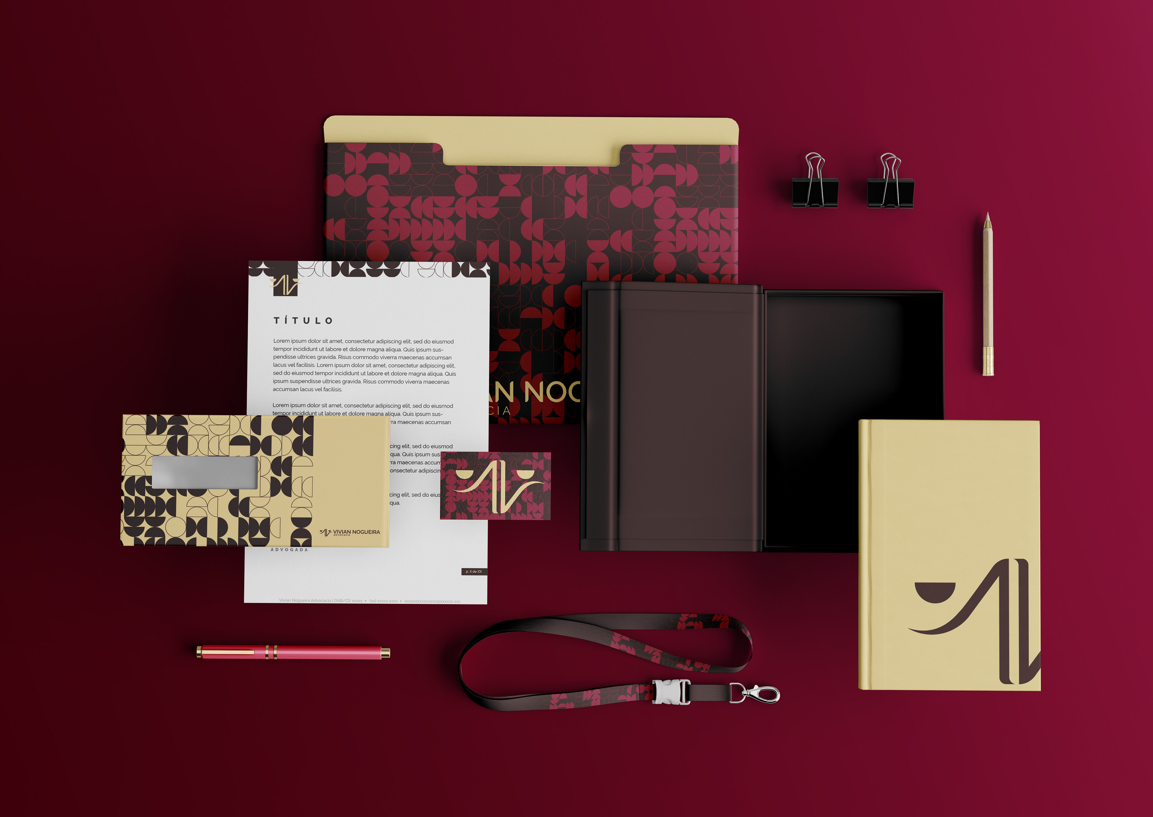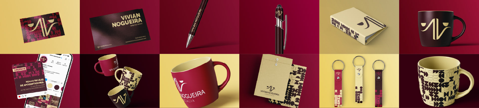 Este projeto é uma atualização de uma identidade visual feita em 2022 para uma advogada. Vivian Nogueira Advocacia nasce de um desejo de causar um impacto forte e feminino no mundo. O novo visual recaiu especialmente sobre o símbolo e as cores da marca, para alinharem melhor os objetivos da marca com o sistema visual.