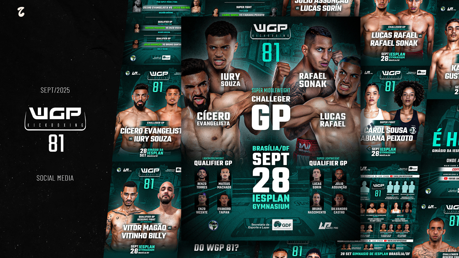 Em 2025, tive o privilégio de estar na linha de frente do design gráfico e da comunicação visual dos eventos da segunda metade da temporada do WGP Kickboxing.